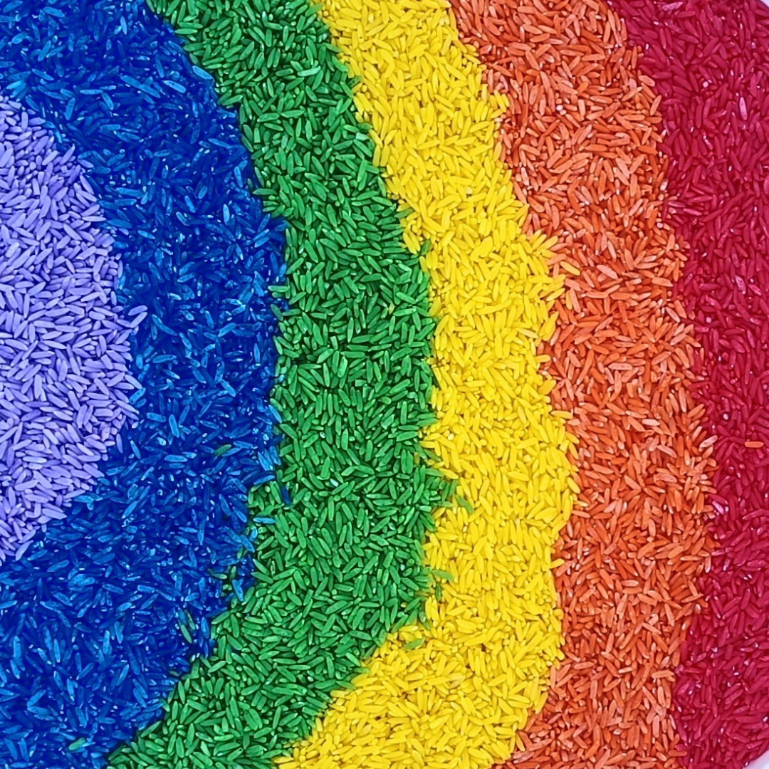 - Arroz colorido intenso: una mezcla fascinante de tonos brillantes y divertidos que imitan la magia de un arco iris.
