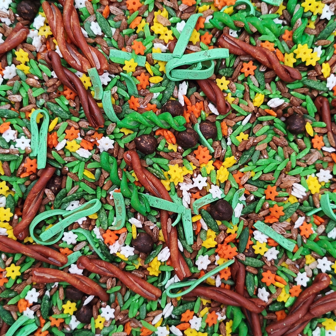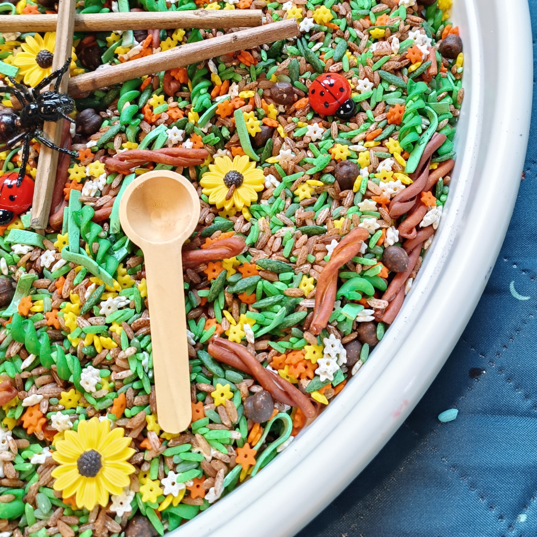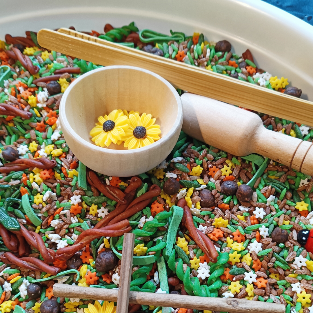 ✨ Mezcla base sensorial : 5 tazas de materiales texturizados para darle vida al suelo del bosque.