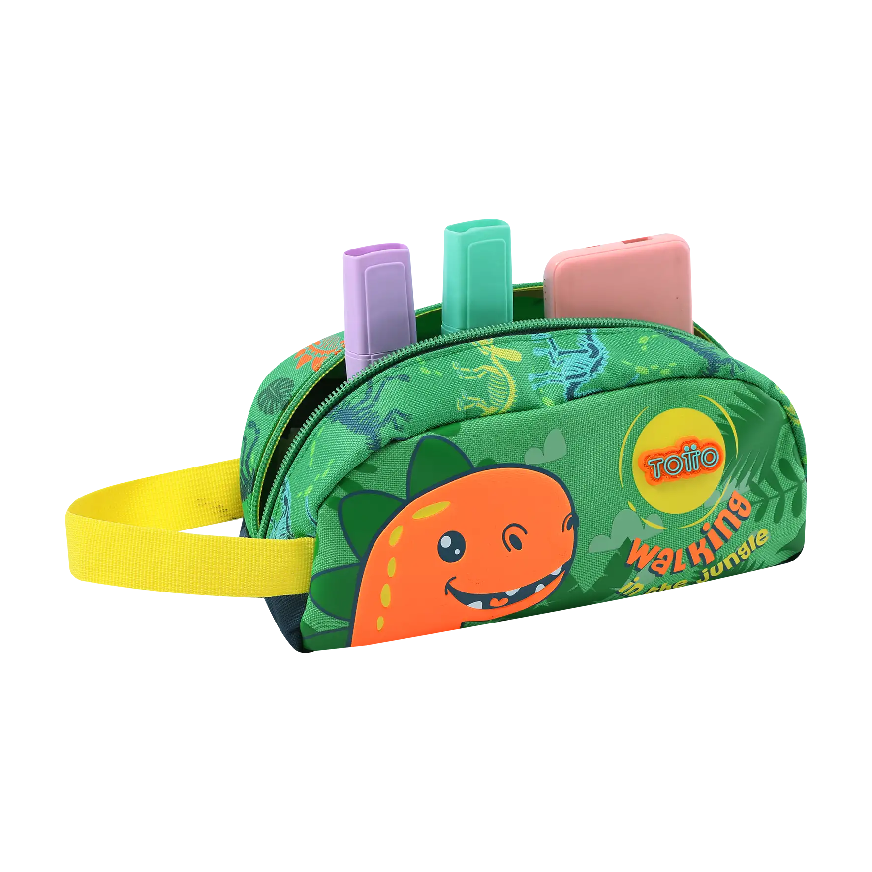 Embarquez pour une aventure amusante dans la jungle avec cette adorable trousse à crayons sur le thème des dinosaures. Dotée d'un joyeux dinosaure orange et d'un feuillage vert vif, elle est parfaite pour les enfants qui aiment les motifs ludiques et colorés. Fabriquée en matériau RPET durable, elle mesure environ 22 x 10,5 x 8 cm et comprend 1 fermeture éclair pour garder vos essentiels organisés. Un accessoire durable et charmant pour les jeunes étudiants ou les explorateurs créatifs en déplacement.