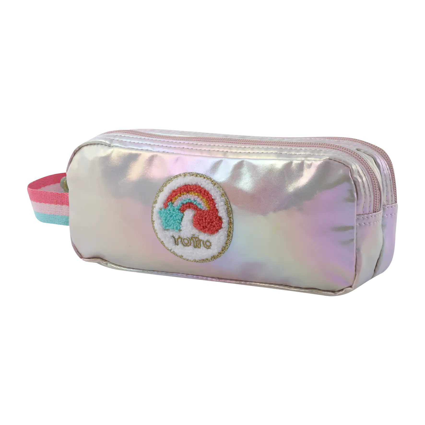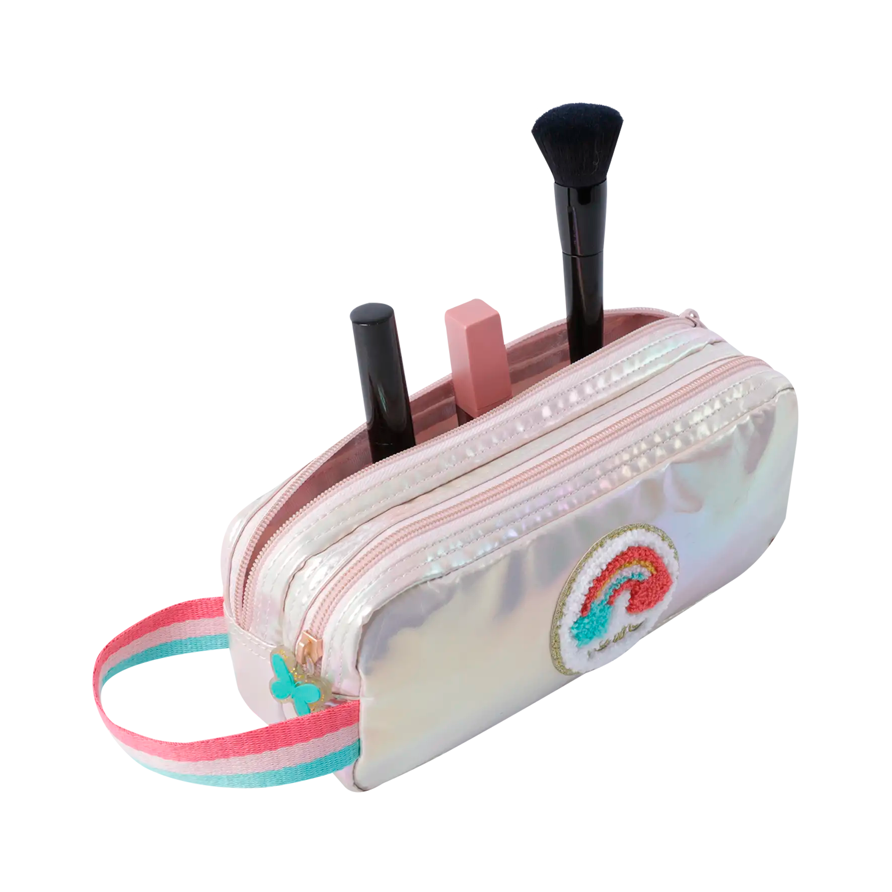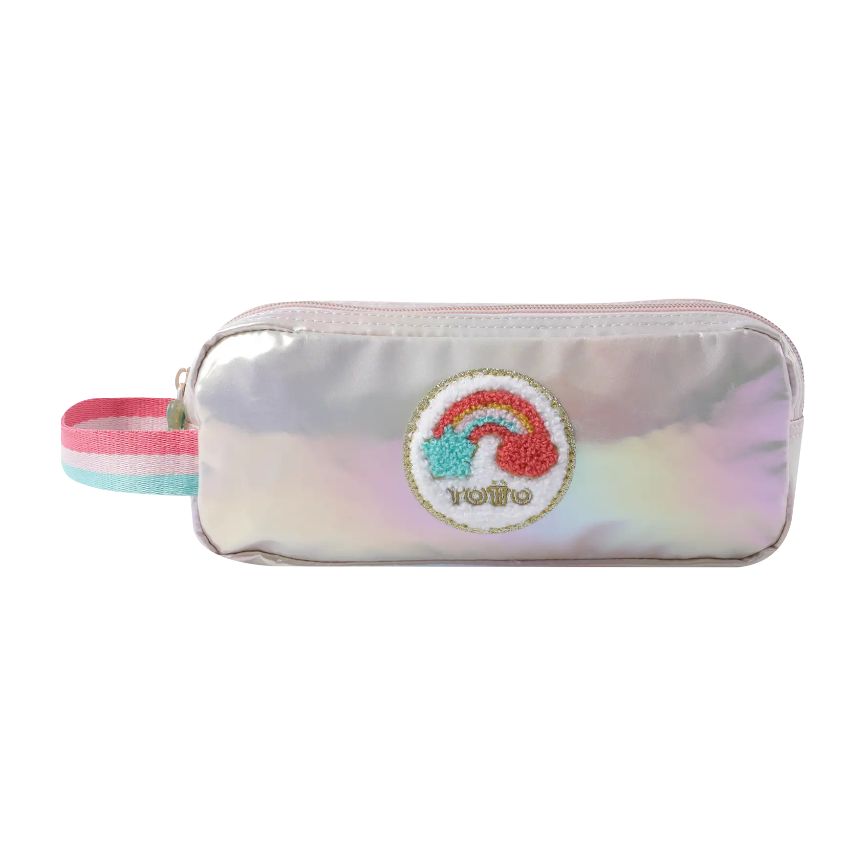 Ajoutez une touche de magie à vos essentiels du quotidien avec cette trousse irisée. Dotée de couleurs arc-en-ciel chatoyantes et d'un design arc-en-ciel vibrant, elle est parfaite pour les rêveurs et ceux qui aiment les accessoires audacieux et accrocheurs. Fabriquée à partir de matériau RPET durable, elle mesure 20,5 x 10 x 7,5 cm et offre 2 fermetures à glissière pour garder vos essentiels en ordre. Un accessoire polyvalent et durable pour les étudiants, les artistes ou toute personne en déplacement.