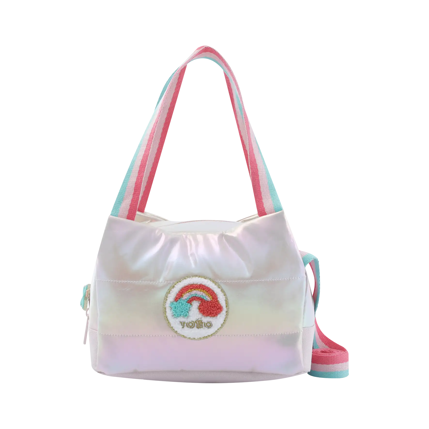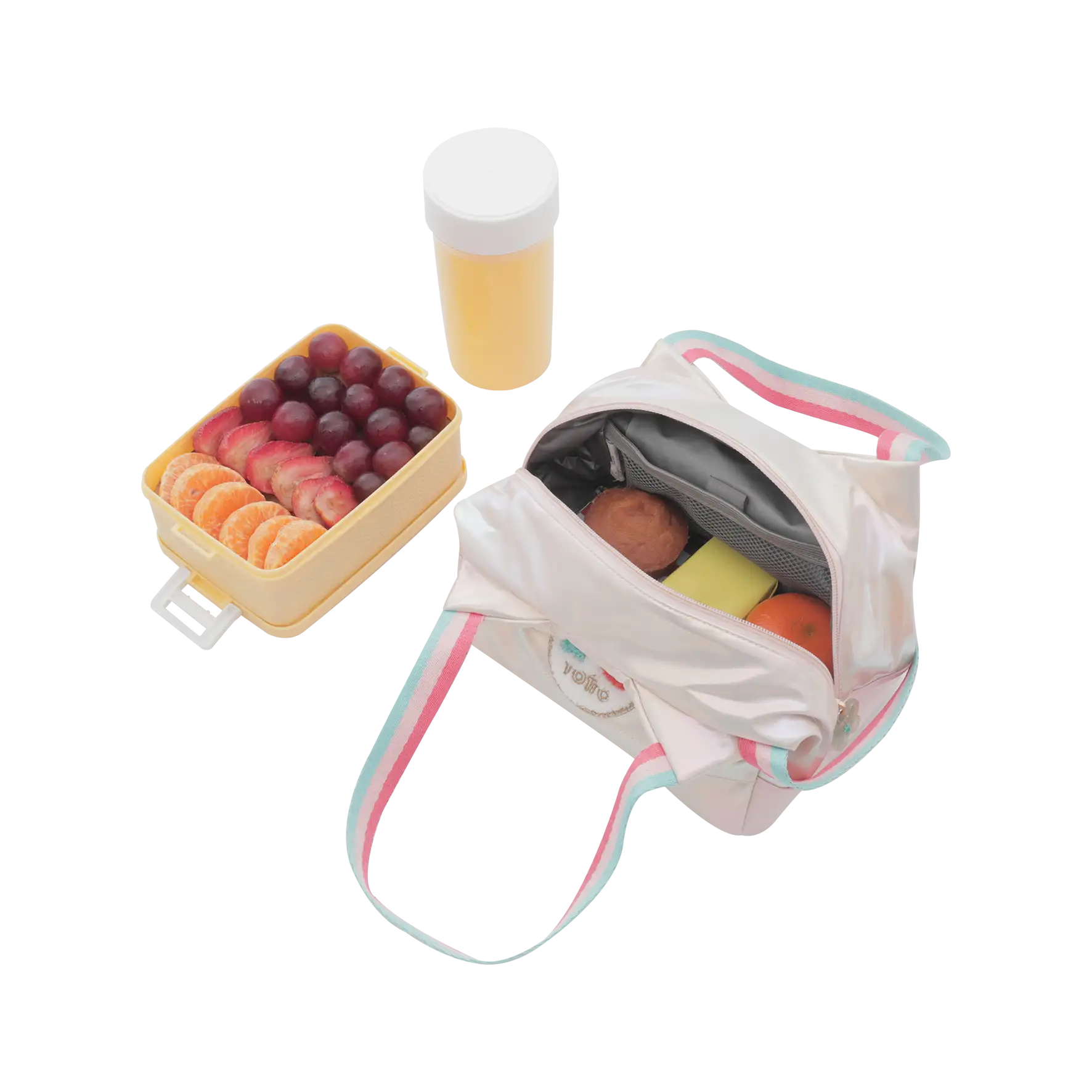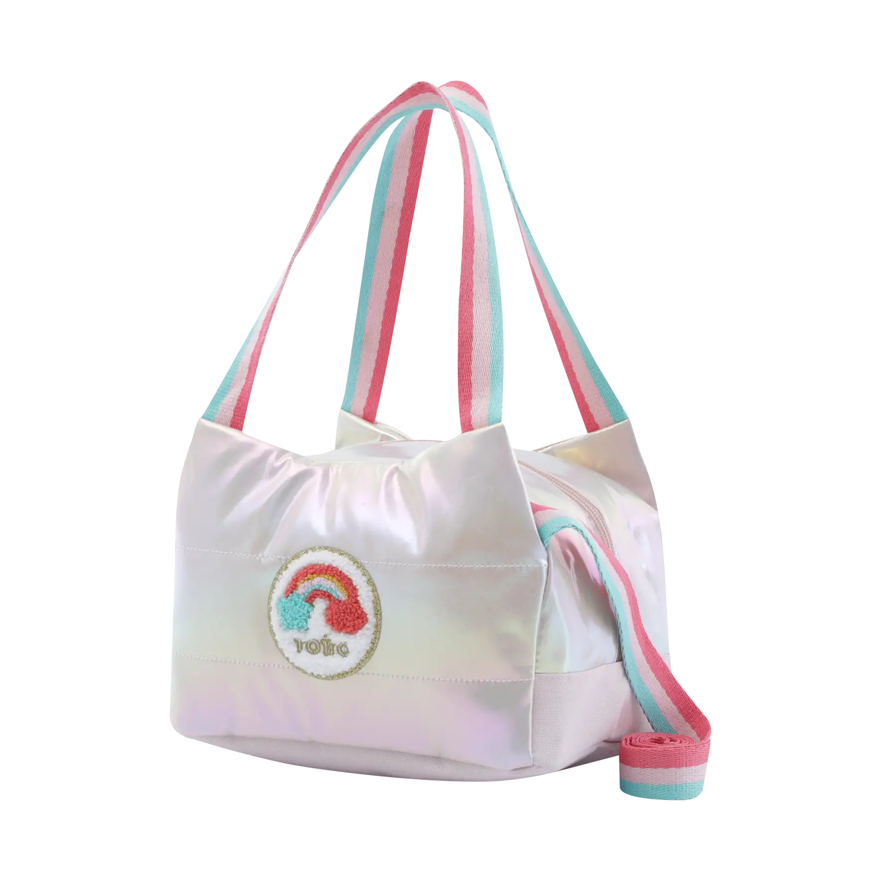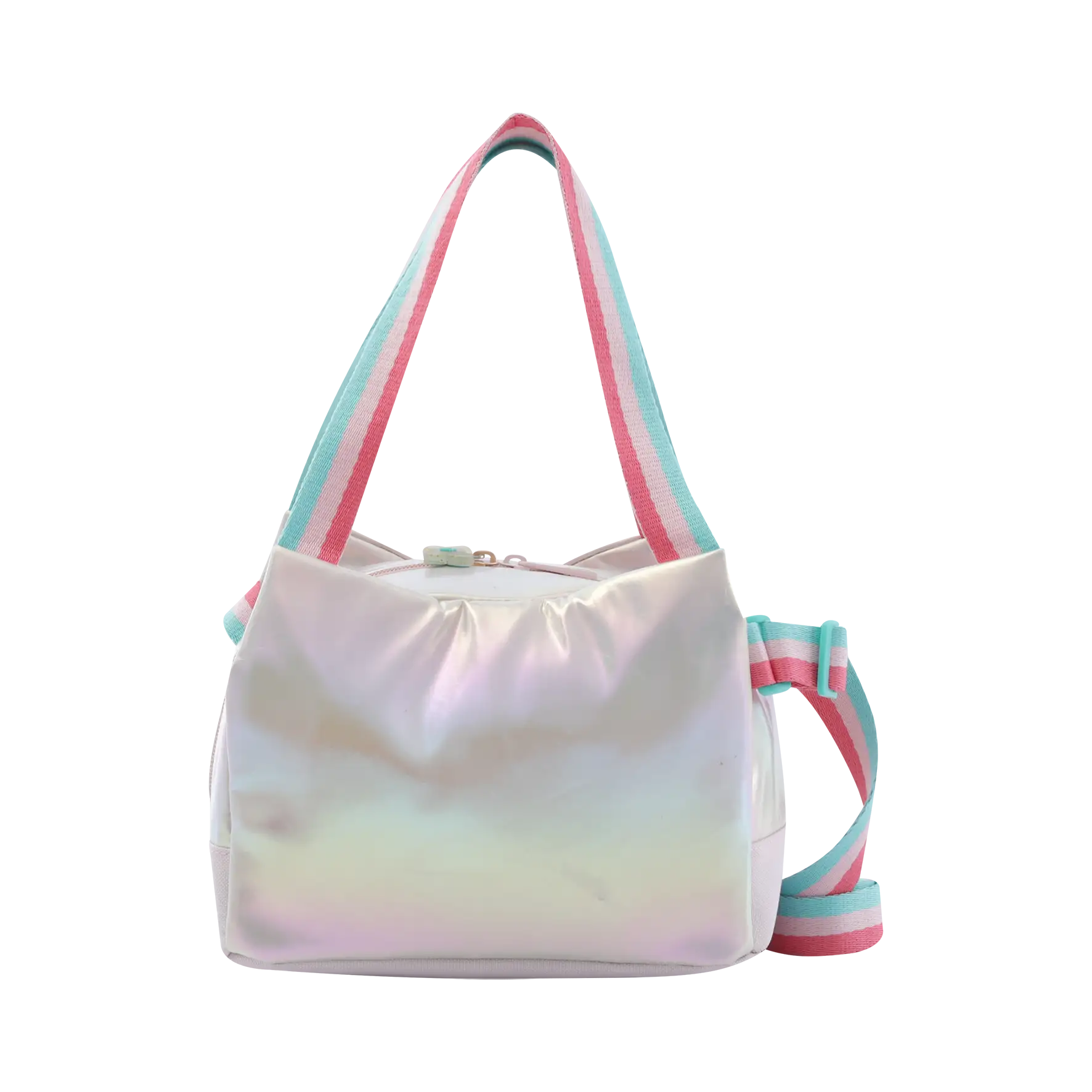 Gardez vos aliments frais et prêts avec ce sac à lunch isotherme irisé, parfait pour ajouter une touche d'éclat à votre journée. Doté d'un superbe design holographique qui capte magnifiquement la lumière, il mesure 23 x 20,5 x 13,5 cm avec une capacité de 5 L, ce qui le rend idéal pour l'école ou les sorties. Le sac comprend une poignée confortable, une bandoulière réglable et un intérieur doublé de PVC lavable, à séchage rapide et résistant aux odeurs, alliant praticité et style éblouissant.