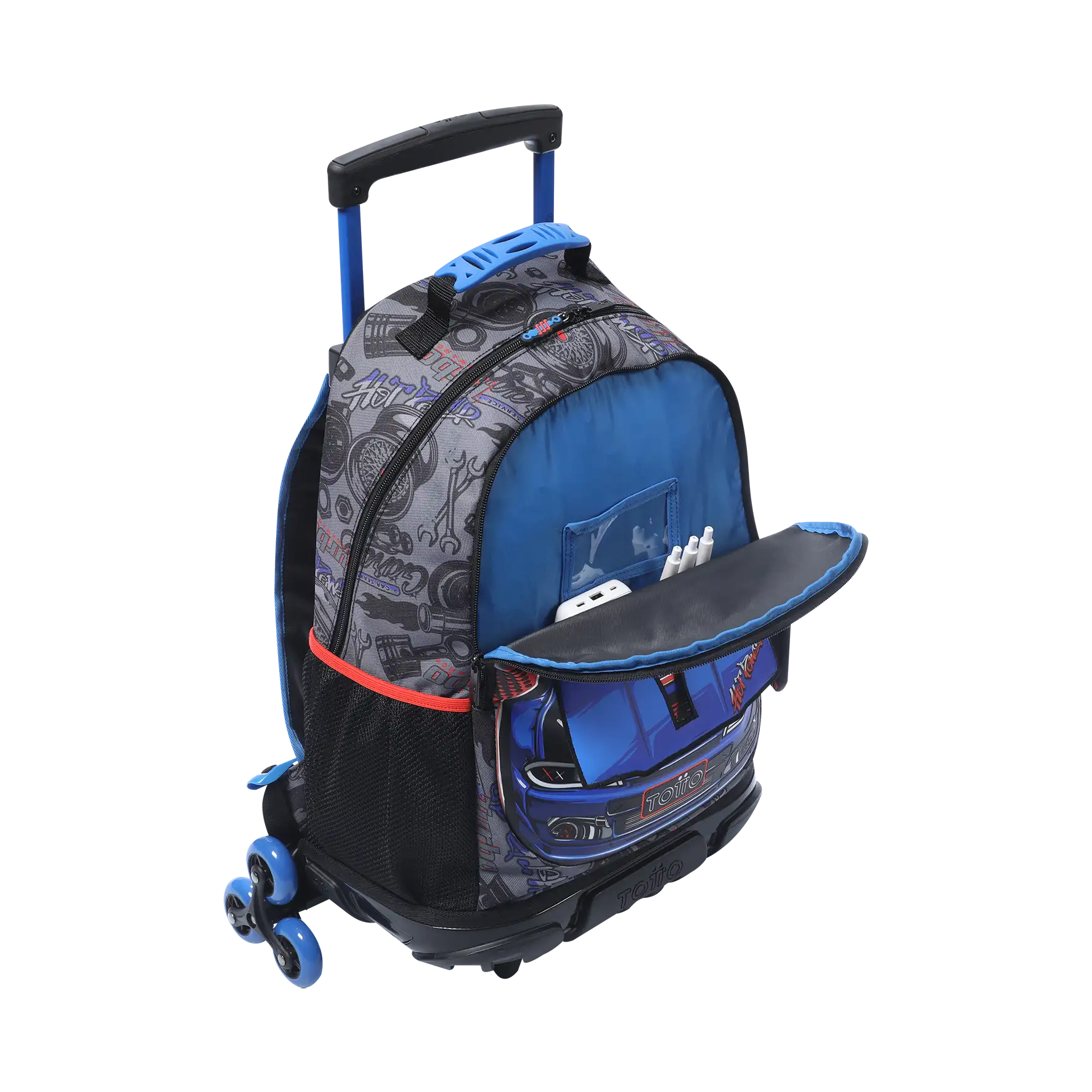 Préparez-vous pour les aventures scolaires avec le Racing Trolley, conçu pour les enfants qui aiment la vitesse et un look sportif. Doté d'un design audacieux inspiré de la course, ce sac à dos allie parfaitement praticité et style. Mesurant 33 x 47,5 x 16 cm avec une généreuse capacité de 35,67 L, il offre un grand espace pour les livres, les fournitures scolaires et plus encore. Fabriqué en matériau RPET respectueux de l'environnement, il est équipé d'un support dorsal ergonomique, d'une housse de protection pour les roues et de bretelles rembourrées pour un transport facile du sac à dos. Avec 2 poches extérieures et une base en caoutchouc renforcée pour plus de durabilité, ce sac à dos est conçu pour les enfants prêts à foncer tout au long de leurs journées d'école !.